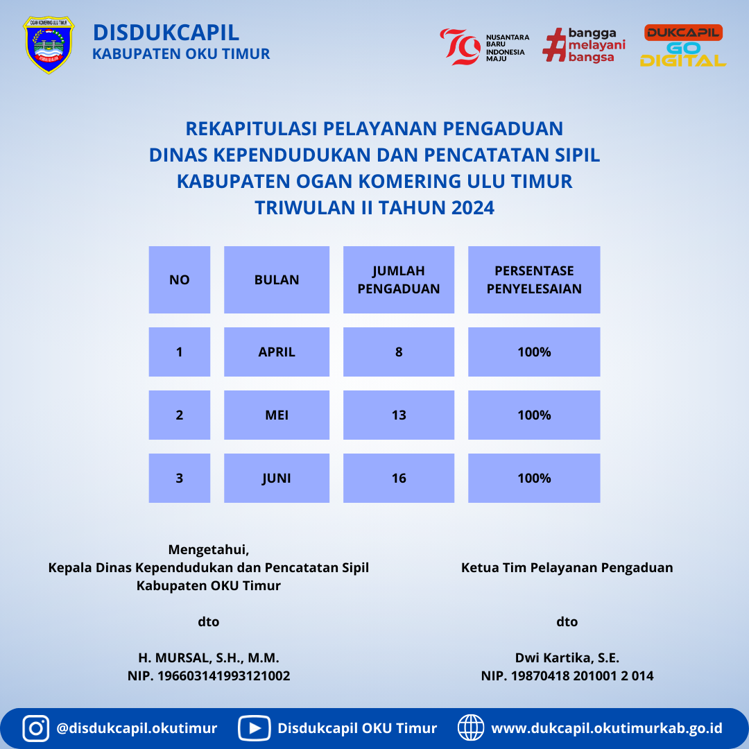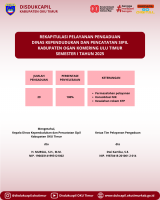 Sambutan Kepala Dinas DINAS KEPENDUDUKAN DAN PENCATATAN SIPIL KABUPATEN OKU TIMUR